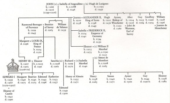 The above table gives a good overview of the entire Plantagenet family. Henry III is on the left, grandson of Henry II.