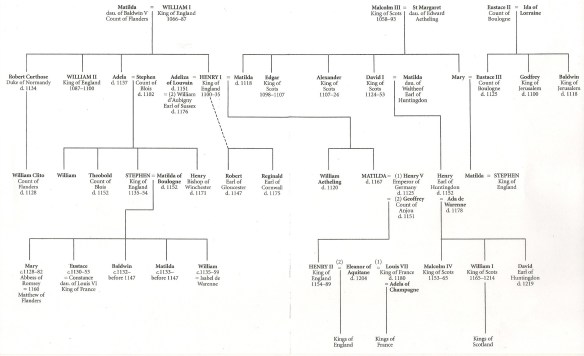 Let’s get started with his ancestry. Here are the Anglo-Normans all the way to Henry II, the first Plantagenet, from C. Warren Hollister’s Henry I (Yale English Monarchs series):