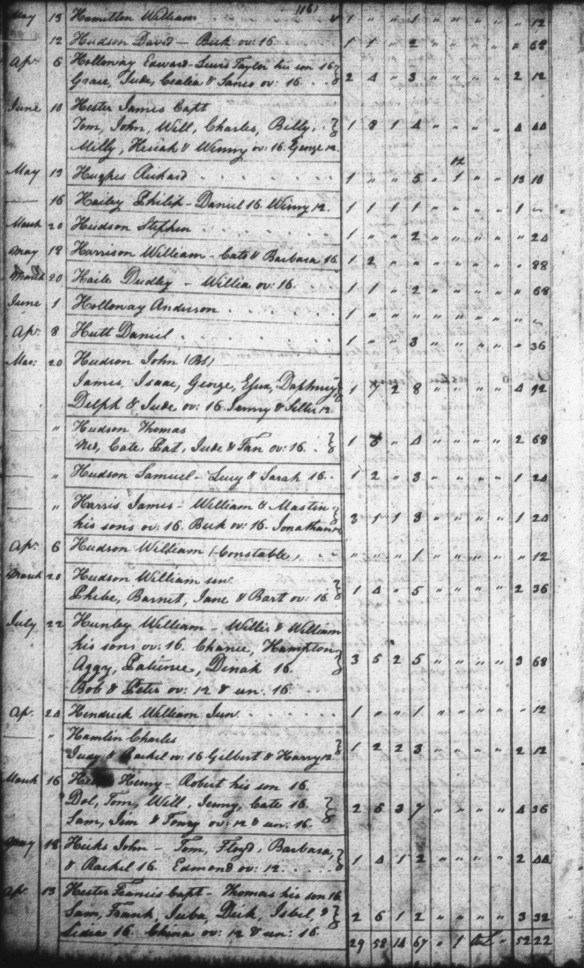 Mecklenburg County, VA March 20 (or 28), 1799, Personal Tax list: William Hudson Sr. and Barnett appear in the 7th box from the bottom (about in center). Note Phoebe, Bart and Jane, too.