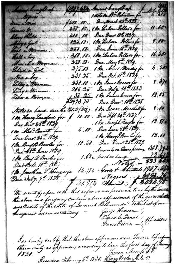 Jeremiah Wilbourn’s slaves and their monetary value are as follows: